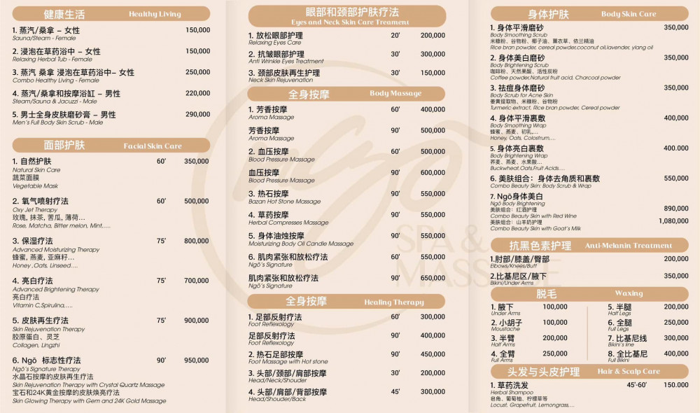 Ngõ Spa & Massage 是新平郡知名SPA ‧ 按摩舒压中心,距离 新山一国际机场(Tan Son Nhat Airport)走路约 10–15 分钟或车程约 5–7 分钟,是来往旅客与当地人放松身心的热门选择。 🌿 服务特色 ✨ 全方位按摩与护理服务 提供多种热门疗程,包括: 芳香精油全身按摩 招牌放松疗程(Ngõ Signature) 足部反射疗法 热石按摩与草本疗法 面部及护肤疗程 ✨ 优质设施与放松空间 店内设有宽敞环境、干蒸/湿蒸 sauna、花草足浴及休憩区,搭配柔和音乐与天然精油香气,营造出静谧舒适的放松氛围。 ✨ 专业按摩师团队 训练有素的按摩师运用不同手法,帮助放松肌肉疲劳、改善血液循环、纾解压力与紧绷感,适合飞行后、观光后或一天工作后的深度放松。 ✨ 价格亲民、CP值高 相较于五星级水疗,Ngõ Spa 提供具有竞争力的价位,适合想要高品质体验又不想花太多费用的旅客或本地客人。