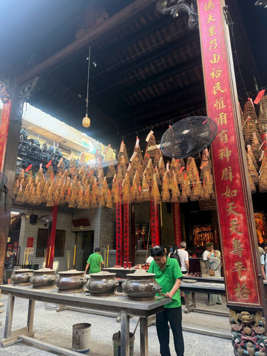 继续探索信仰文化的旅程,来到堤岸区的心脏地带 义安会馆。这是一座关于华人信仰与社群生活的 活博物馆。跨过门槛,您仿佛进入另一个时空,满是红底金字的匾额对联,空气中弥漫着虔诚的气息,诉说着一个跨越数代、紧密相连的社群历史故事。中式午餐